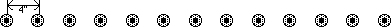 on the board in a straight line 4 inches apart from each other.