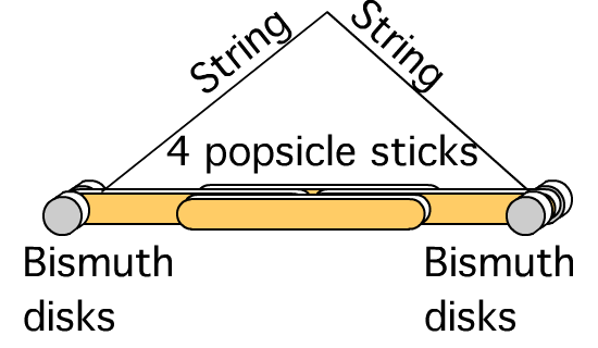 Hang the popsicle sticks with bismuth attached to the ends from a none magnetic stand. I use a small screw placed in the bottom of a hanging wall cabinet. Hold a magnet to the bismuth and watch it move. (I use this as one of several magnetism stations.)