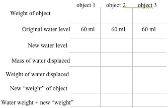5. What property of the shapes will determine how much water gets displaced?_______________________