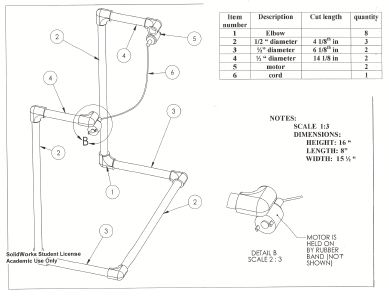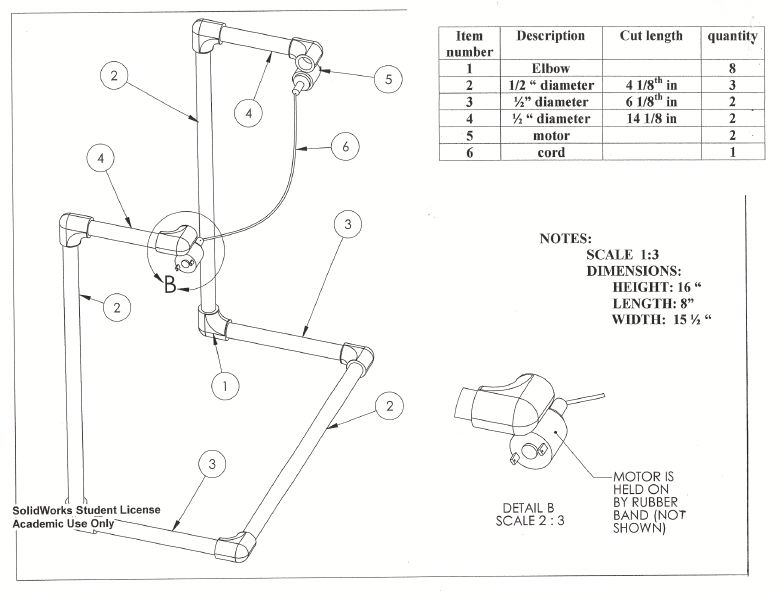 Construction: Click here or on the drawing below to see a large image of this design Ø The dowel helps the string to stay attached to the motor. Drill a small hole in the dowel to slip it over the top extended piece of the motor. It only needs to be about 1-2 cm. You want it to fit snugly and allow the motor to turn. The string is attached at the dowel or around the base of the dowel. You simply need some spot to “grab it.” Once the cord is attached to the motor, you may want to use duct tape to “encourage” it to stay in place. (Duct tape is such a standard physics tool!) Ø The motor is then attached to the PVC pipe by wrapping an elastic band around both the motor and the PVC pipe. Ø Obviously, the number of cells and the size of the resistor can vary. These work well for me, but you may choose to use a variable resistor with a different amount of cells. Ø Two alligator clips are attached to each motor. One end connects to the battery pack. The other clip is attached to the resistor. Ø Make sure that the motors are turning the same way to set up the standing wave. If not, you may need to reverse the alligator clips. Sources and references: I did not develop this idea but viewed one, made by another physics teacher. I have been unable to find her source, although I have been searching the Internet. |