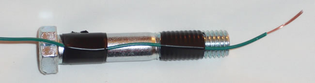 - Tape the 4inches of unwrapped wire to the bolt. This tape will keep the wire from coming undone.